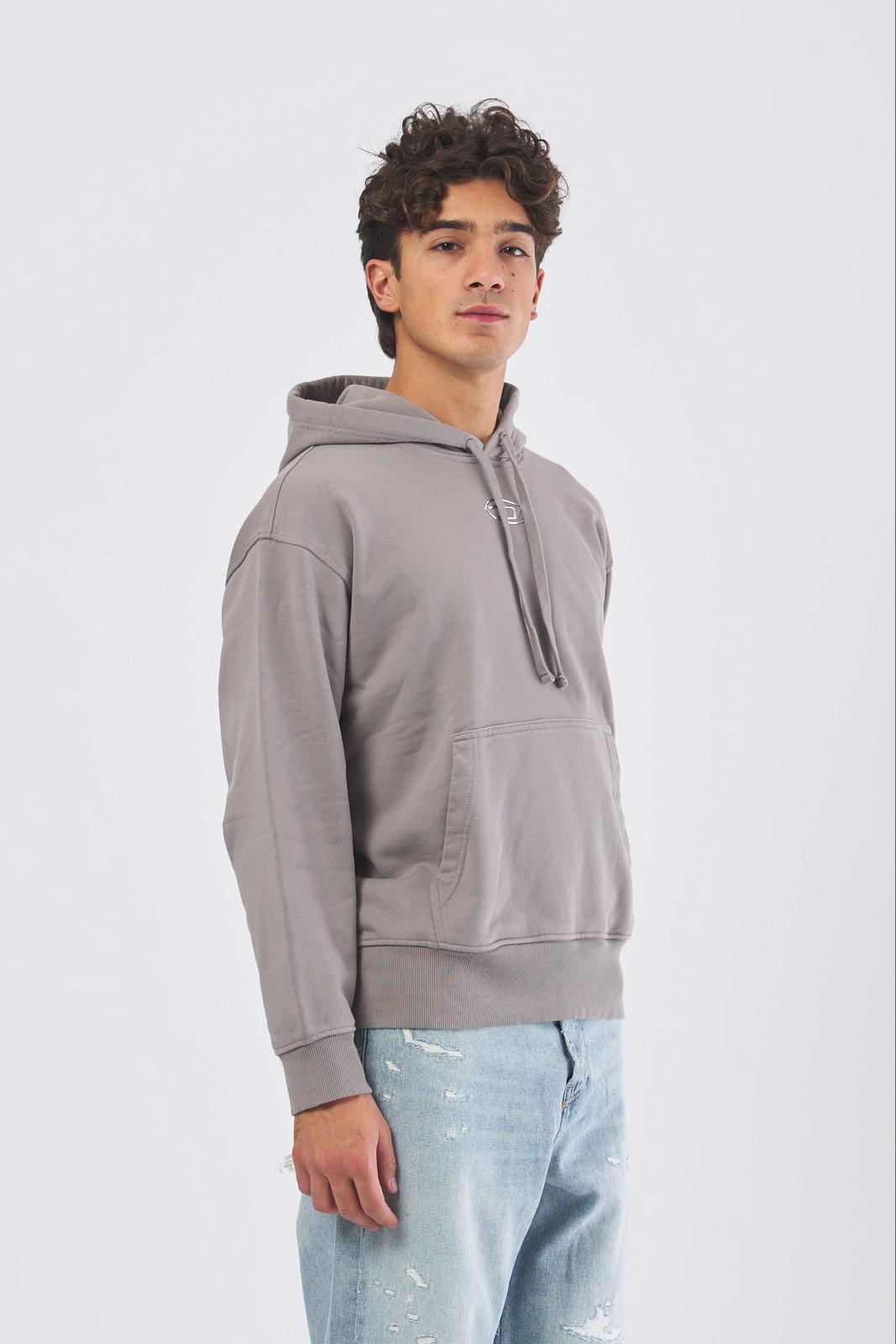 Felpa da uomo con cappuccio dal taglio oversize, perfetta per un look contemporaneo e rilassato. Realizzata in jersey di puro cotone organico, presenta una comoda tasca a marsupio e il logo Oval D metallico applicato sul petto per un tocco distintivo.