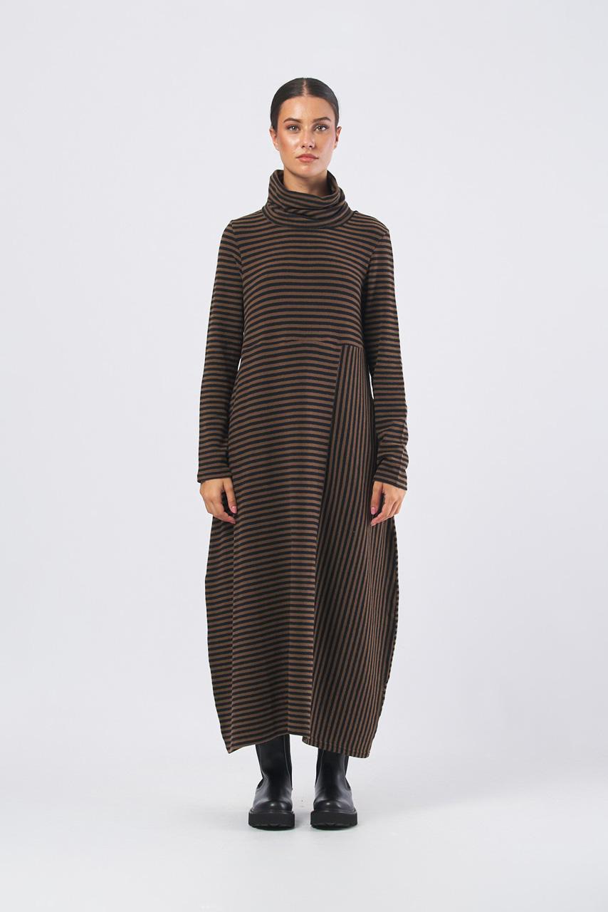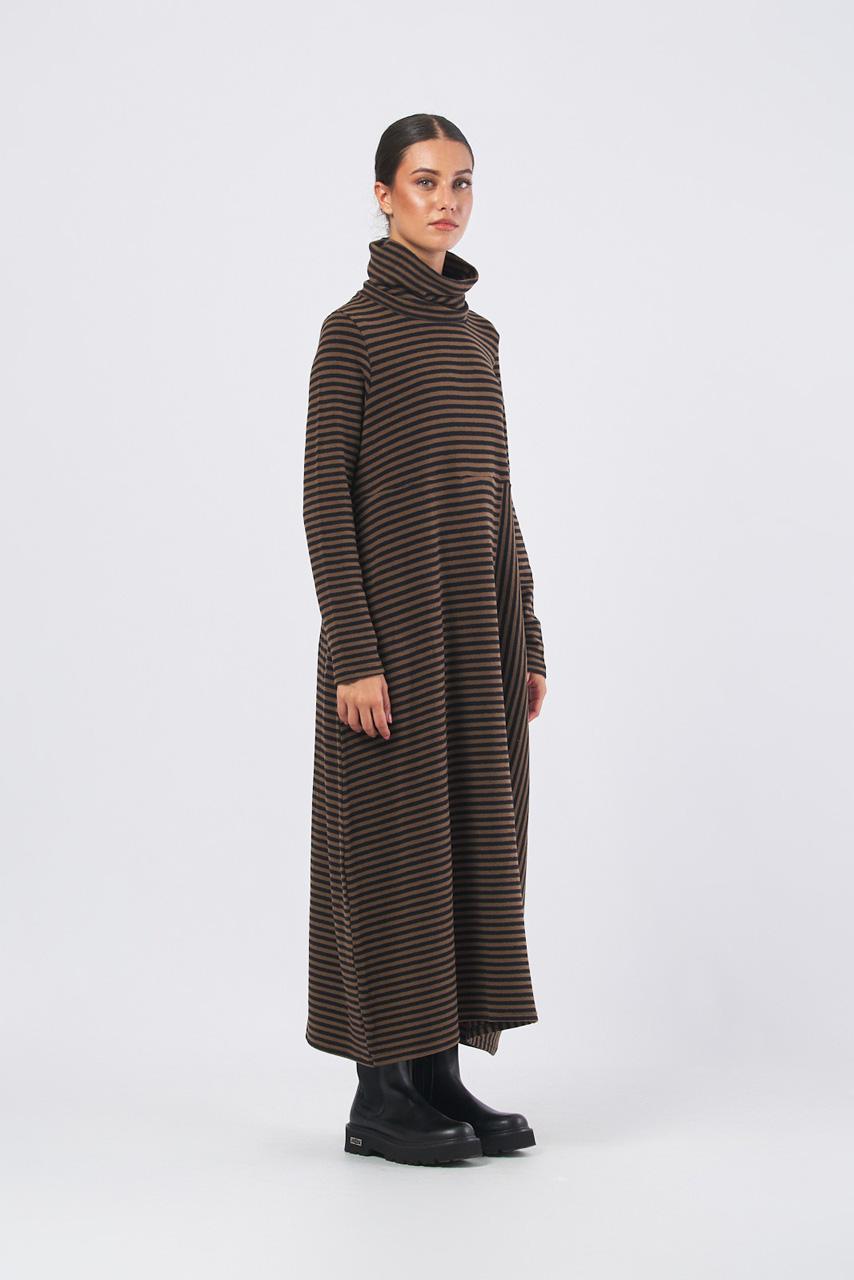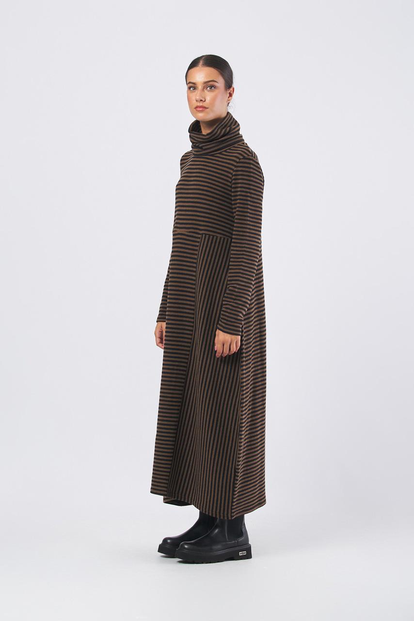 Abito lungo color tabacco collo alto