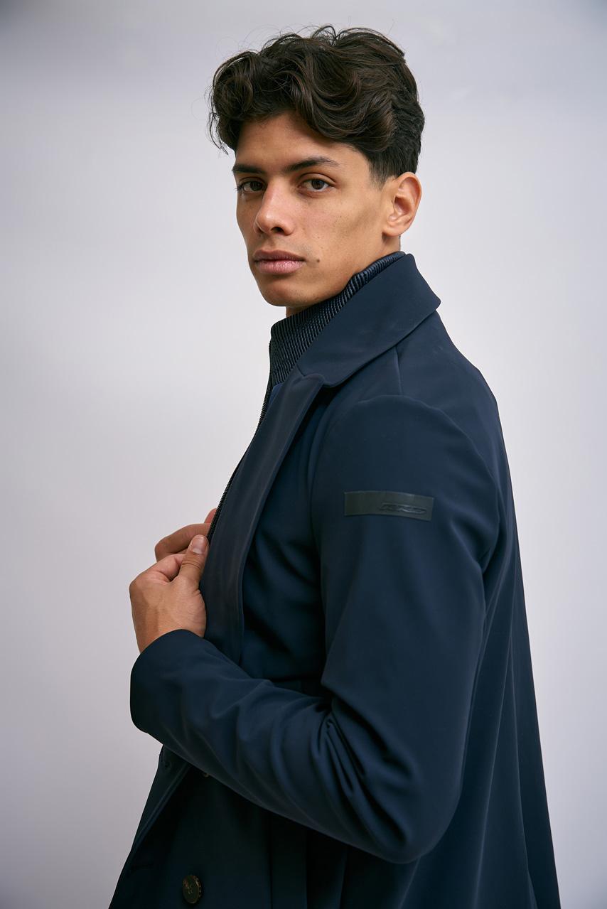 Caban doppiopetto realizzato nell'esclusivo tessuto tecnico Stratofabric #3 impermeabile e traspirante. Caratterizzato da esterno in SURFLEX® stretch dal look super opaco e interno con davantino staccabile per la massima protezione termica. Un capo versatile che unisce eleganza sartoriale e performance high-tech.