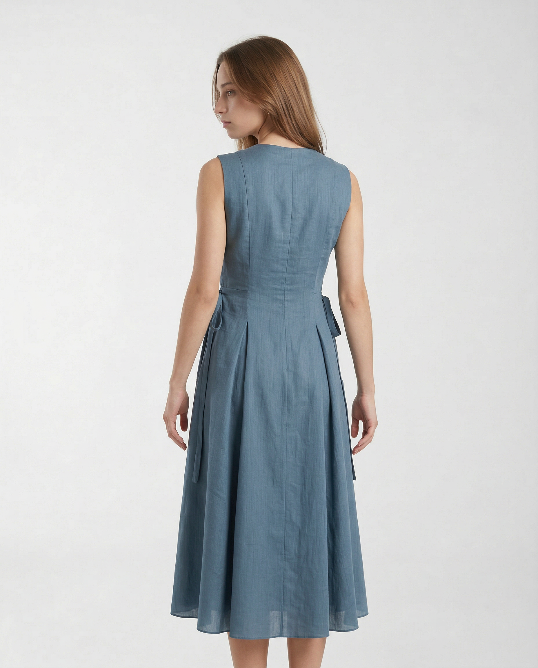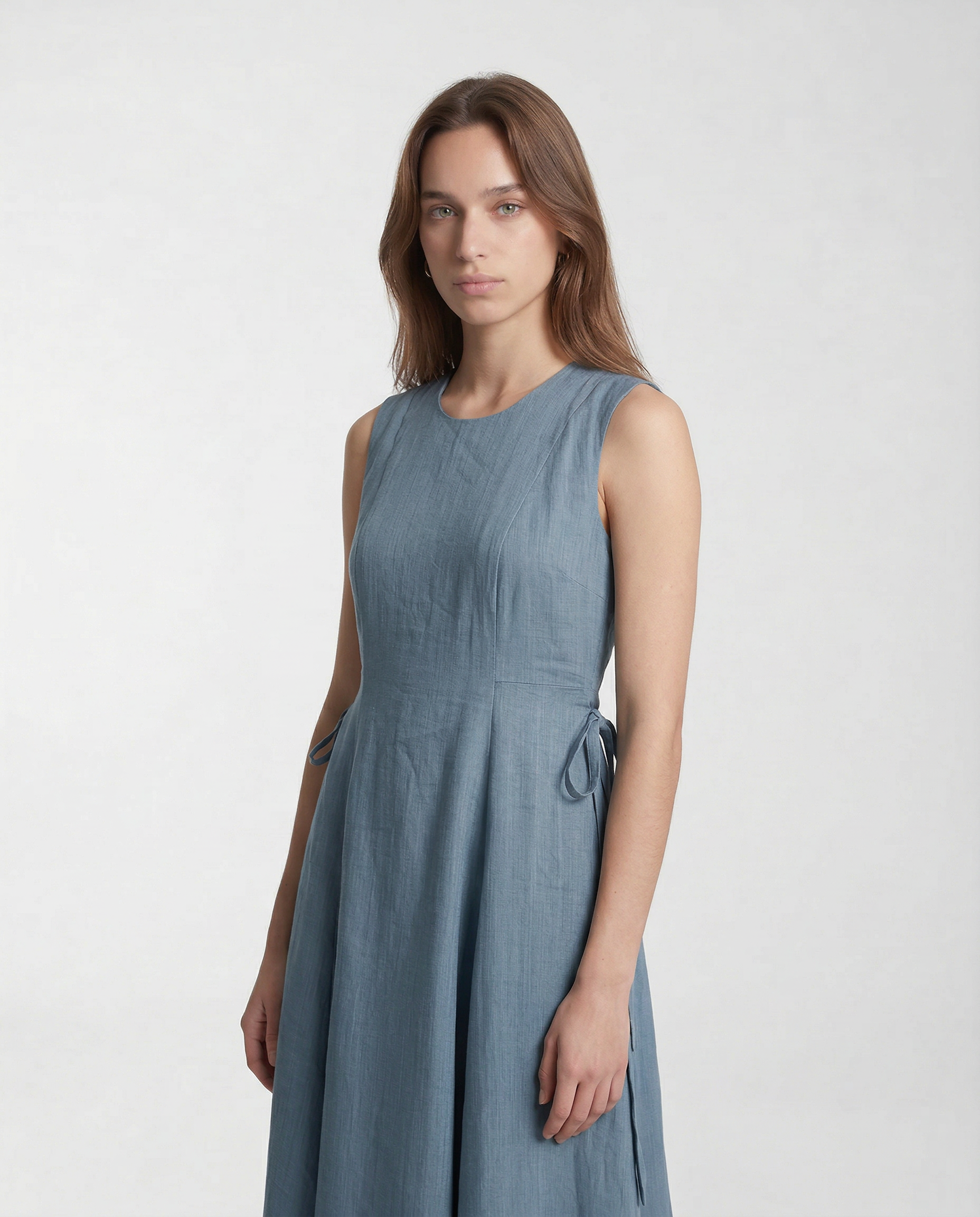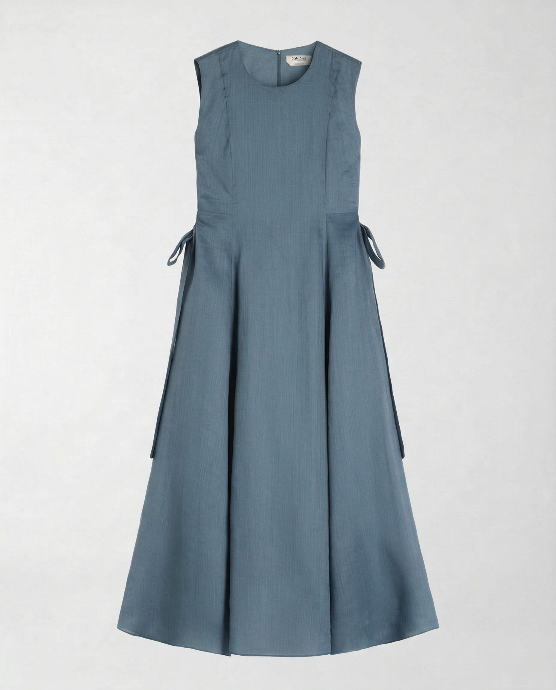 Un abito lungo e senza maniche firmato Max Mara, un capolavoro di design e leggerezza. Realizzato in preziosa tela di puro ramiè, questo capo si distingue per la sua linea svasata che accarezza la figura, accentuata da pince verticali che ne definiscono la silhouette. Un dettaglio con coulisse sul retro aggiunge un tocco di eleganza funzionale. Perfetto per chi cerca uno stile sofisticato e senza tempo, espressione della più alta qualità sartoriale del brand.Composizione: Tessuto 100% ramiè; fodera 100% cotone.Vestibilità: SvasataCodice: SMMAQUILE - 016