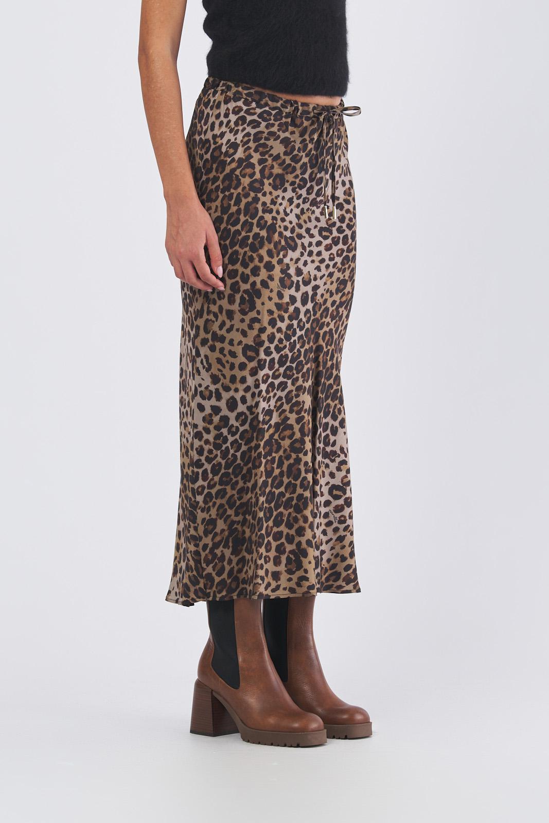 Gonna color naturale; tessuto principale contenente materie prime derivanti dalla cellulosa del legno, fibra ricavata nel rispetto del patrimonio forestaleGonna in twill di viscosa stampatoFit drittoInserto elastico in vita con coulisse e finalini metalliciTaglio sbieco che si allarga leggermente al fondo