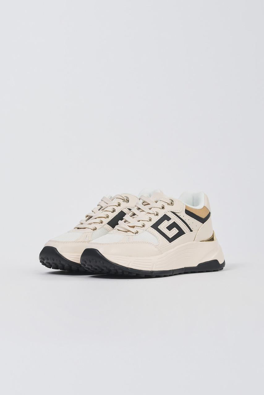 La sneaker Fonzi di Guess in un'elegante tonalità crema. Realizzata con una tomaia in ecopelle e caratterizzata da una moderna suola platform in gomma, è la scarpa ideale per aggiungere un tocco di stile ai tuoi outfit casual quotidiani.