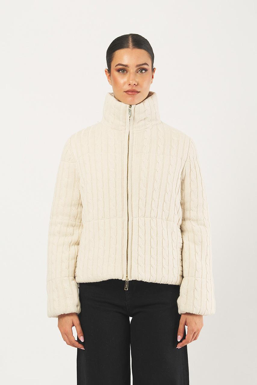 Eleganza e comfort si fondono in questa giacca imbottita modello Venice, caratterizzata da una texture ricercata. Realizzata in un morbido filato misto, offre il calore ideale per la mezza stagione e l'inverno, declinata in una raffinata tonalità avorio perfetta per illuminare i look quotidiani.