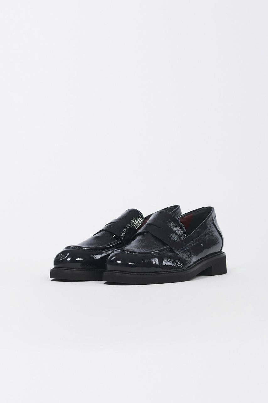 Mocassino da donna dal design classico, realizzato in morbida pelle verniciata blu con finitura lucida effetto Naplak. Perfetto per aggiungere un tocco di colore e raffinatezza ai look da giorno, sia formali che casual.