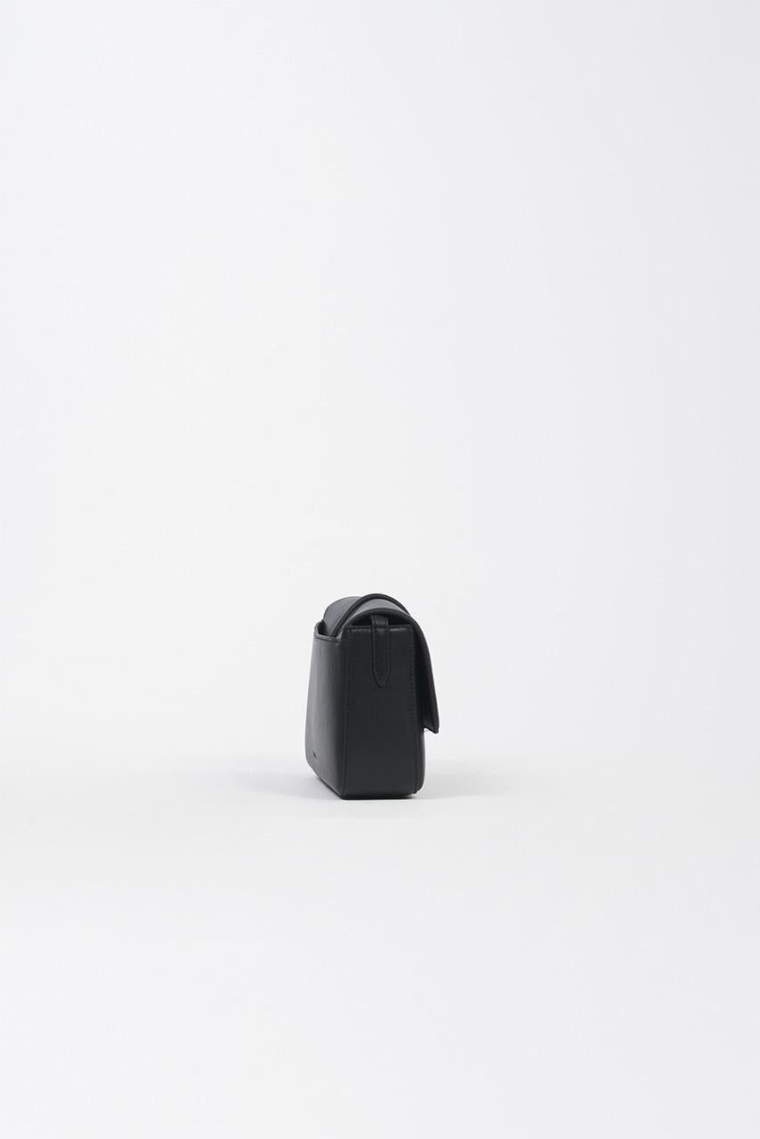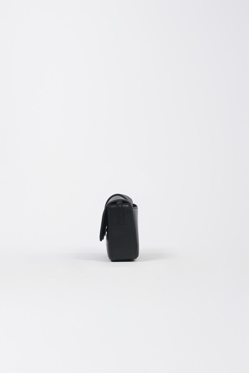 Borsa a spalla black linea Notte, in pelle di vitello spazzolato, chiusura magnetica incisa. Design rigido