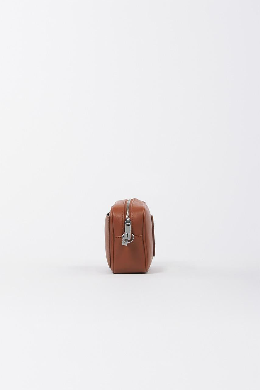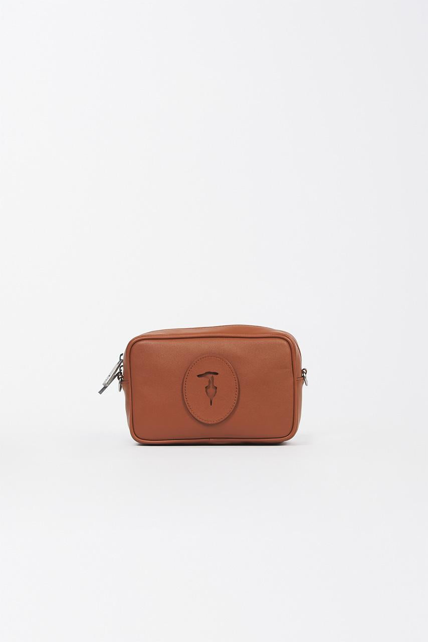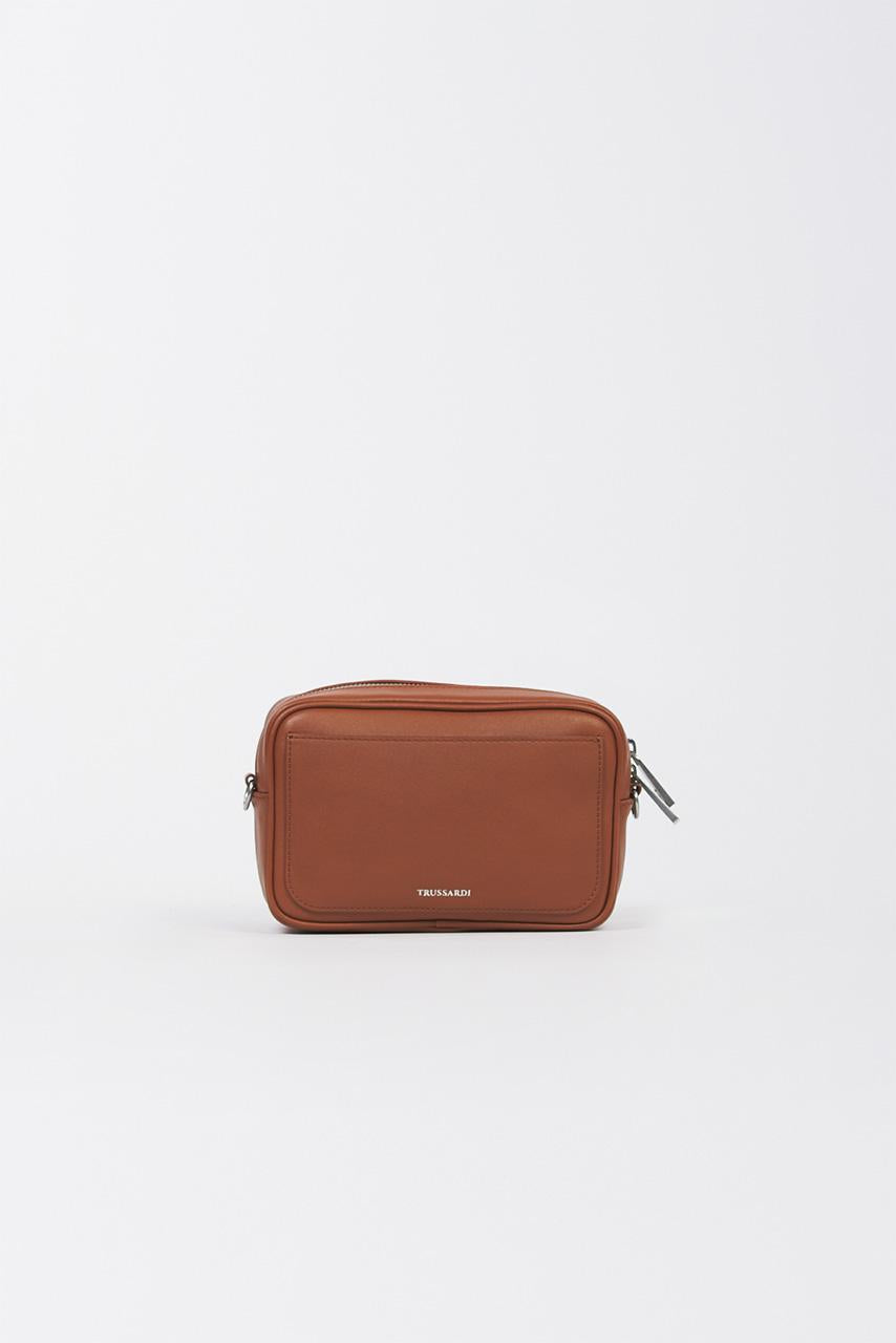 Borsa vera pelle color brandy linea Society, con tracolla amovibile, zip bidirezionale e tasca interna.