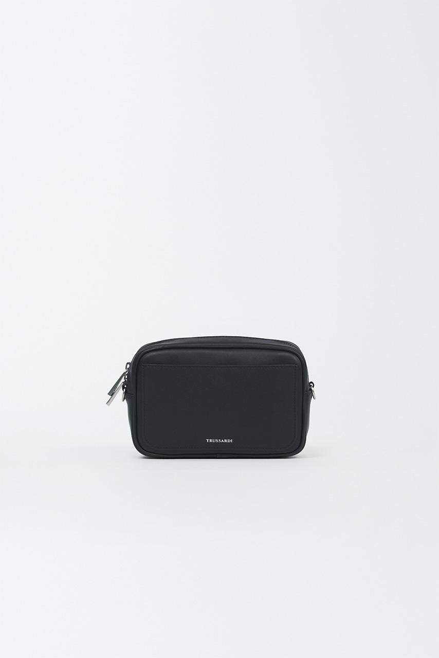 Borsa vera pelle nera linea Society, con tracolla amovibile, zip bidirezionale e tasca interna.